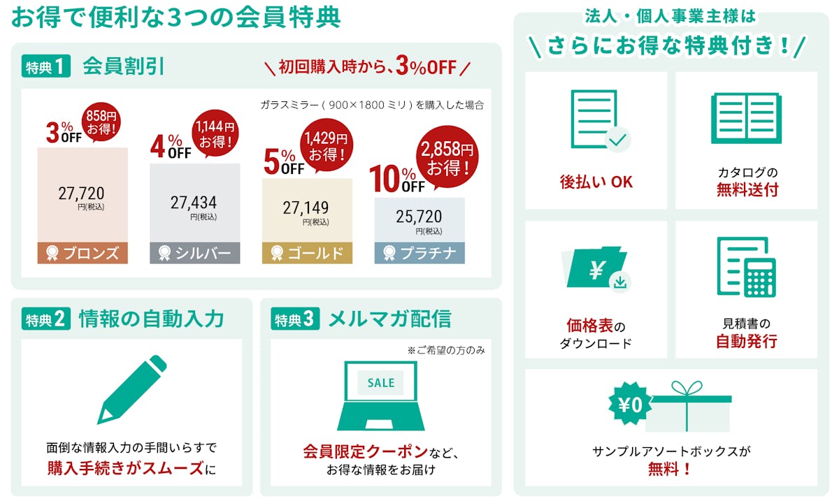 当社では、商品をお得にご購入いただける各種割引をご用意しています。各種割引を併用いただくと、最大20%OFFの価格でご購入いただけます。