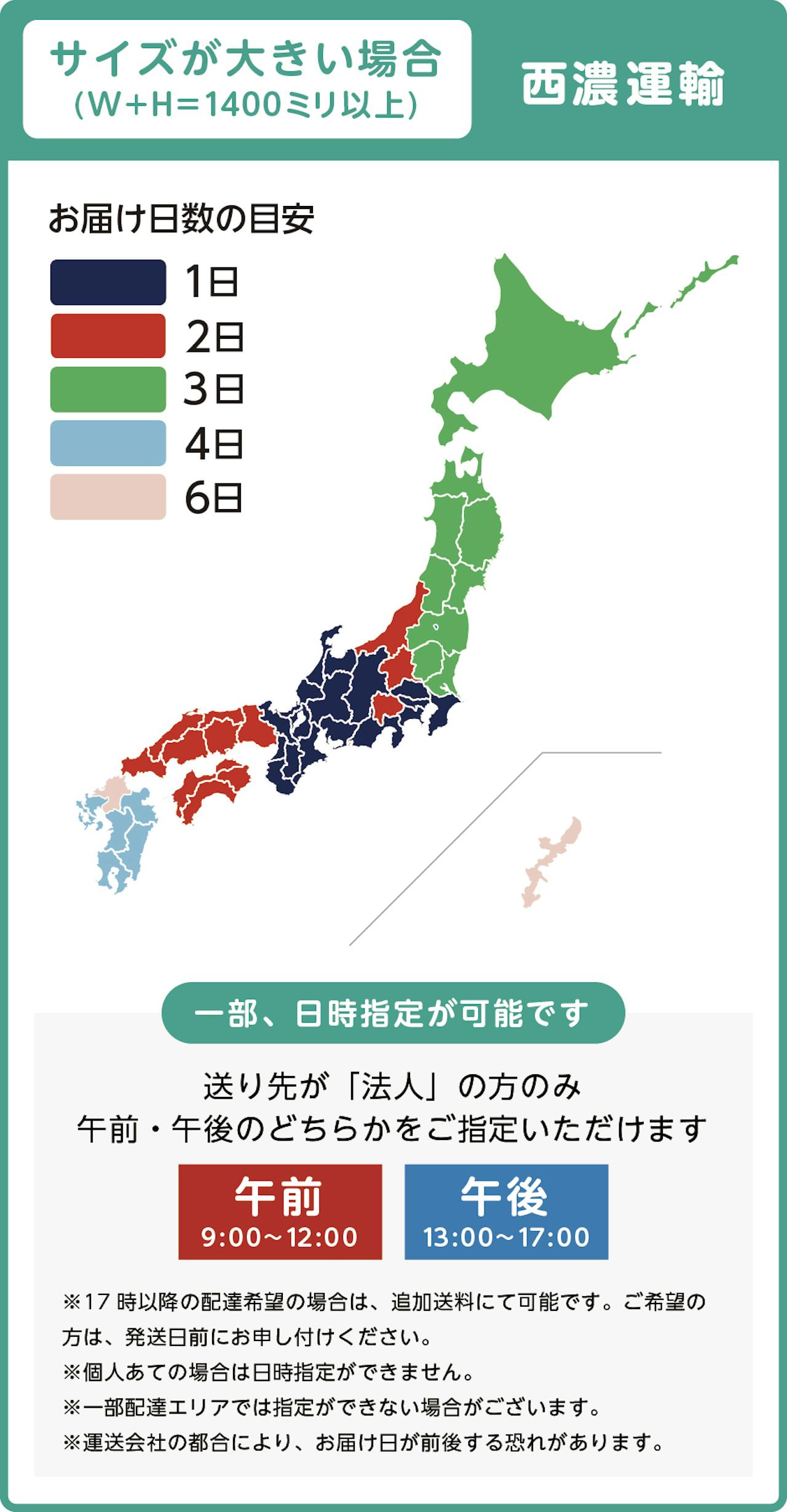 お届け日数の目安・日時指定は下記の通りです。