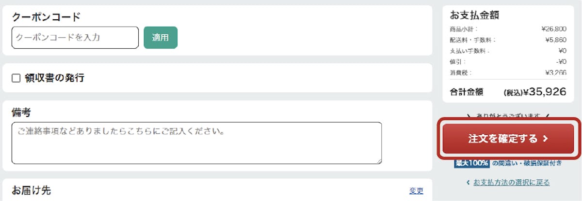 入力内容にお間違いがなければ「注文を確定する」ボタンをクリックしてください。ご注文が完了します。