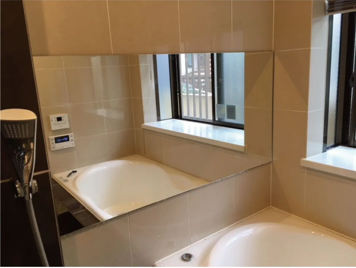 長年使用していた浴室の鏡の交換ということで、施工前と後のお写真をいただきました。